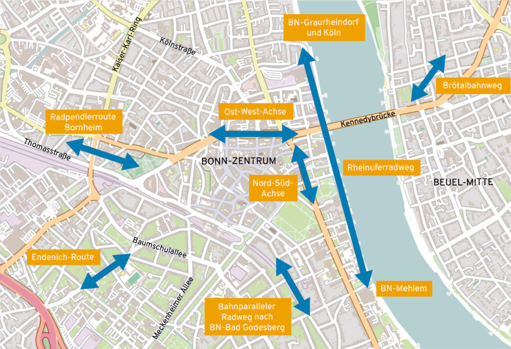 - Parallel zur Bahn: verläuft zentral durch Bonn